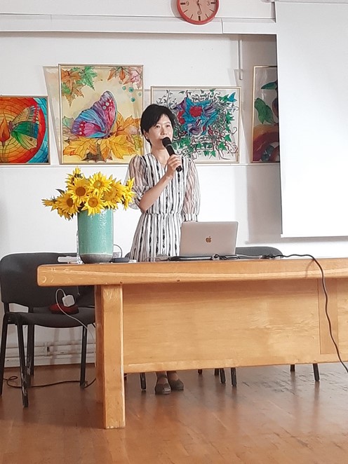 „U petak, 29. rujna 2023. g. u 12:20 u potkrovlju Škole japanska pijanistica Yoko Nishii održala je govor i upoznala nas s nekim običajima Japana, svojim obrazovanjem i životnim preokretom koji je doživjela. Prije nego što je diplomirala francuski jezik i književnost na Sveučilištu Keio u Tokiju (1998.), u japanskom glazbenom časopisu pročitala je članak o audiciji za stipendiju koju daje Visoka škola za glazbenu umjetnost u Hrvatskoj. Prijave su već prošle, ali je odlučila nazvati i pitati jesu li je voljni poslušati. Tako je došla u zemlju o kojoj nije ništa znala, čak ni gdje se nalazi. Audicija je uspješno prošla, ali je zamolila predstavnike škole da pričekaju jednu godinu kako bi završila fakultet u Tokiju, na što su joj izašli u susret. To je bio početak njezina boravka u Hrvatskoj, a kasnije je postala magistar glazbene umjetnosti. Ljubiteljica je Dore Pejačević i odsvirala nam je jednu njezinu skladbu. Hrvatski joj ide odlično i sve smo je mogli razumjeti. Na primjer, pričala nam je kako se u japanskim vlakovima ne smije pričati i biti na mobitelima, u protivnom budete izbačeni iz vlaka. Školovanje im nije kao kod nas podijeljeno u osam godina osnovne škole i dodatne tri ili četiri godine srednje škole nego na jedno obrazovno razdoblje od šest godina i dva od po tri godine. U bilo kojem trenutku mogli smo joj postaviti pitanje, što je bilo odlično. Bila je jako simpatična i često je izricala šale kako bi nas sve nasmijala. Drago mi je što sam ju mogla poslušati!“